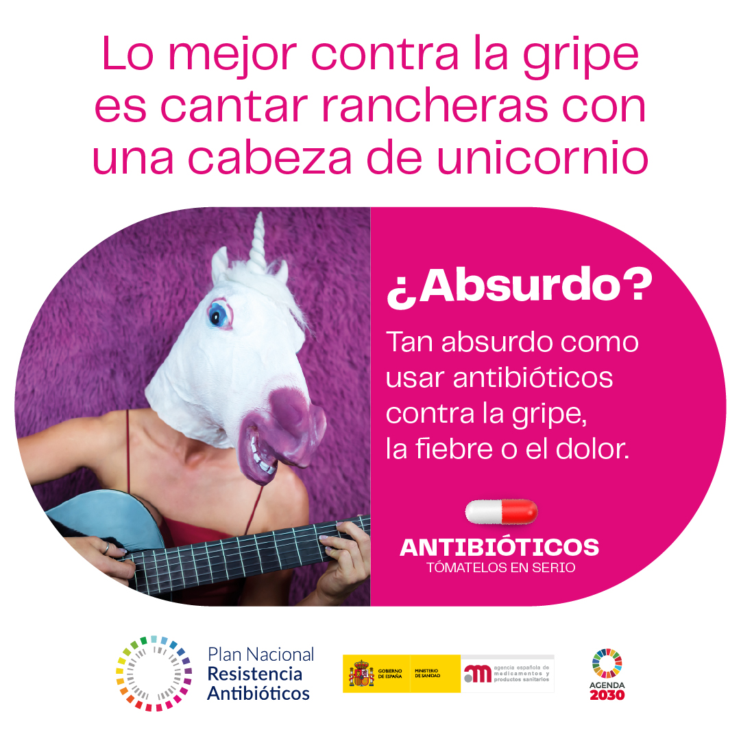 Con un toque de humor, el mensaje principal de esta campaña subraya el error que supone utilizar antibióticos para tratar una infección de origen vírico como la gripe y lo hace comparando esta situación con otra que también resulta “absurda”.